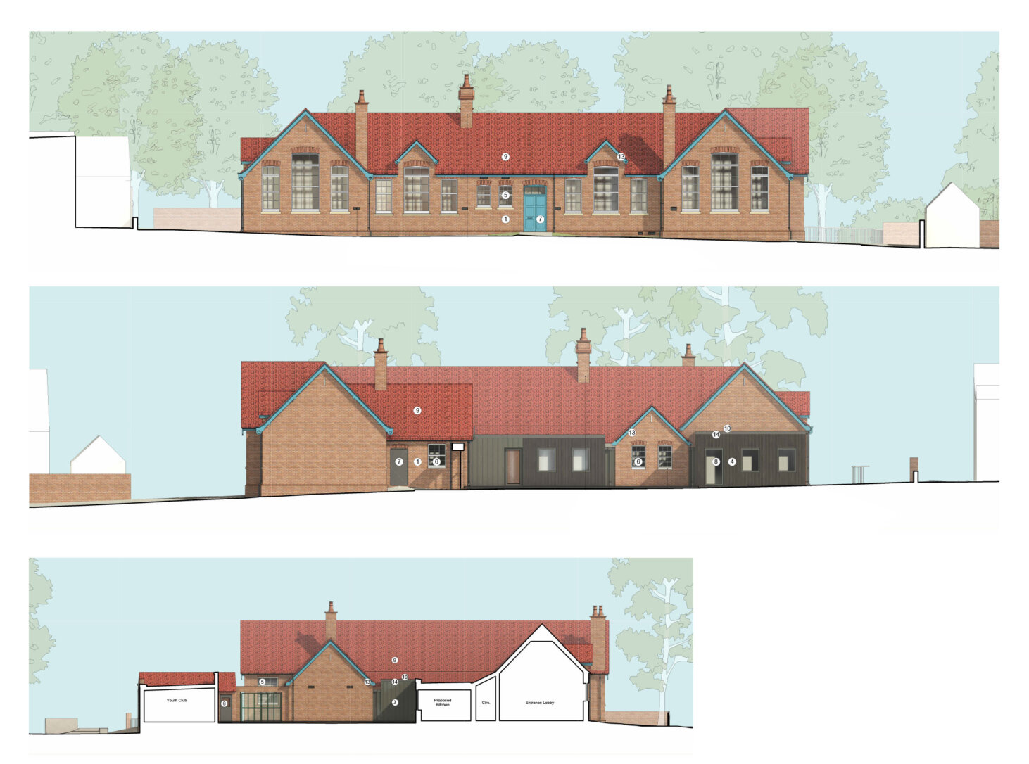 We were initially engaged to assess the existing building, developing alternate proposals which help to secure the long term future of the building through sensitive repairs and extensions. Phasing was an important factor in the design process, with the proposal maintaining continued operation of hired spaces for community use during any major maintenance and construction works. We have submitted the planning application for this proposal and are currently awaiting response.